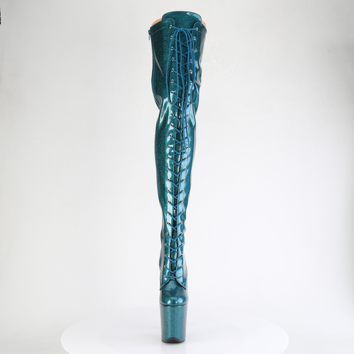 Glitter verde azulado 20 cm FLAMINGO-3020GP botas altas de salto alto com ataduras