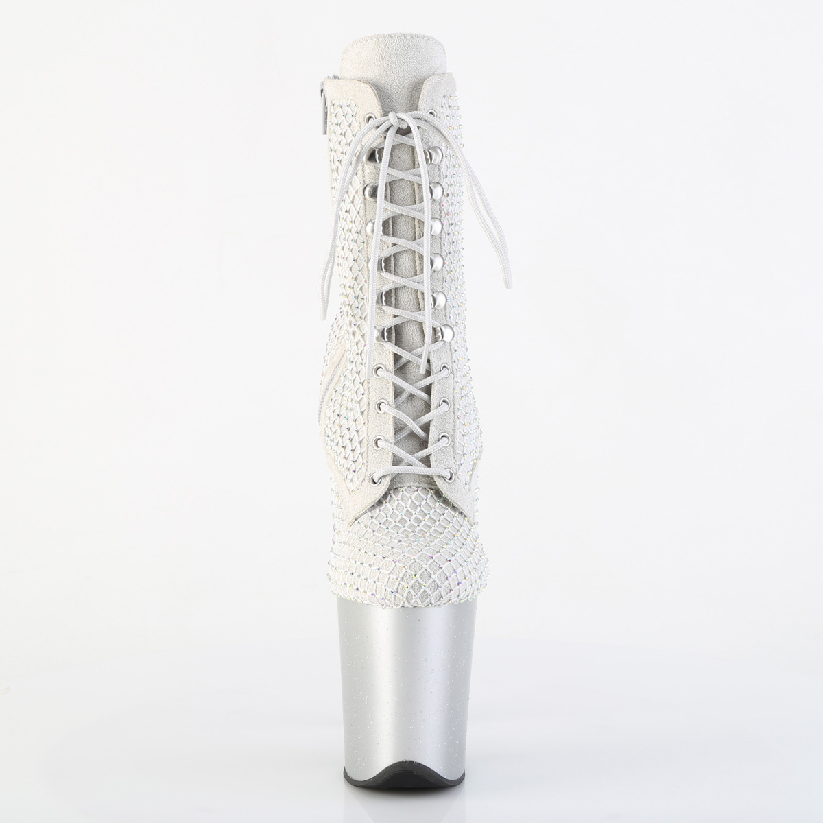 FLAMINGO-1020RM 20 cm bota salto alto plataforma pleaser strass prata