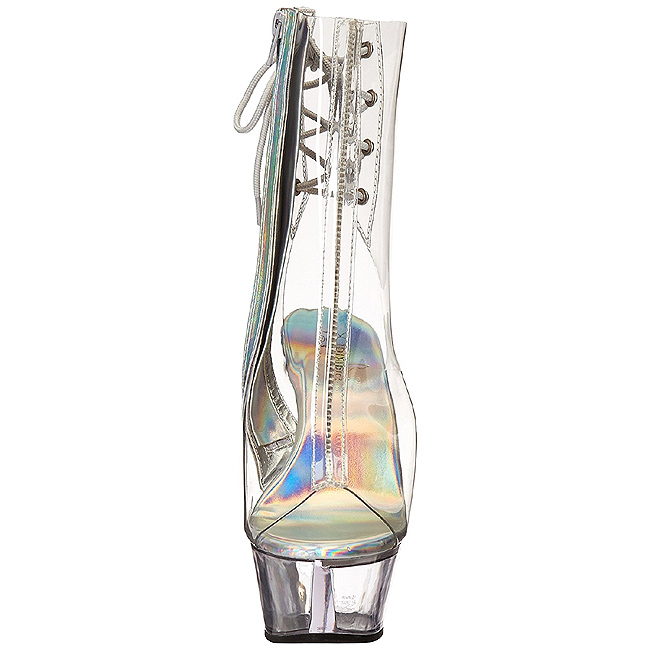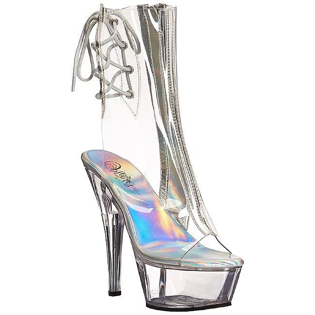 pleaser - kiss1018c/c/m - 6"" (15.2cm) heel, 1 3/4"" (4.5cm) transparente , open toe botas saltos altos plataforma a partir acrílico, frente abrir dedo do pé verso abrir calcanhar com cadarços. o cama para pés é acolchoado com palmilha para alto conforto. tornozelo alto plataforma botinha para mulher, material superior feito a partir transparente folha de vinil, fecho metálico localizado em si de lado para todo altura cano. perfeito pole dance botas, exótico gogo sapatos de dança! pleaser saltos altos botas são com amor feito!