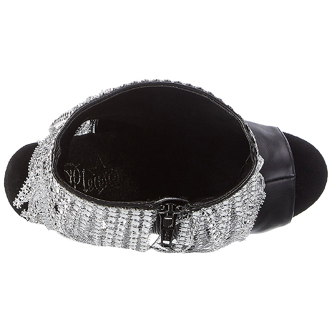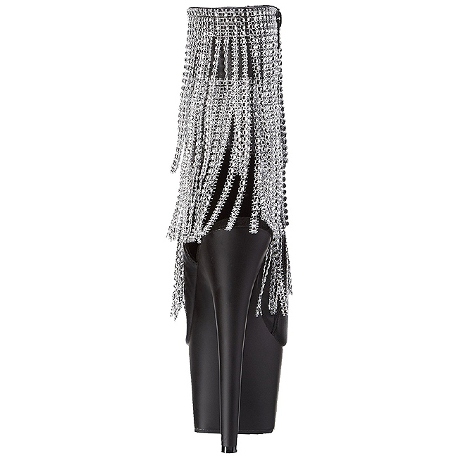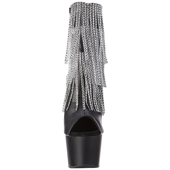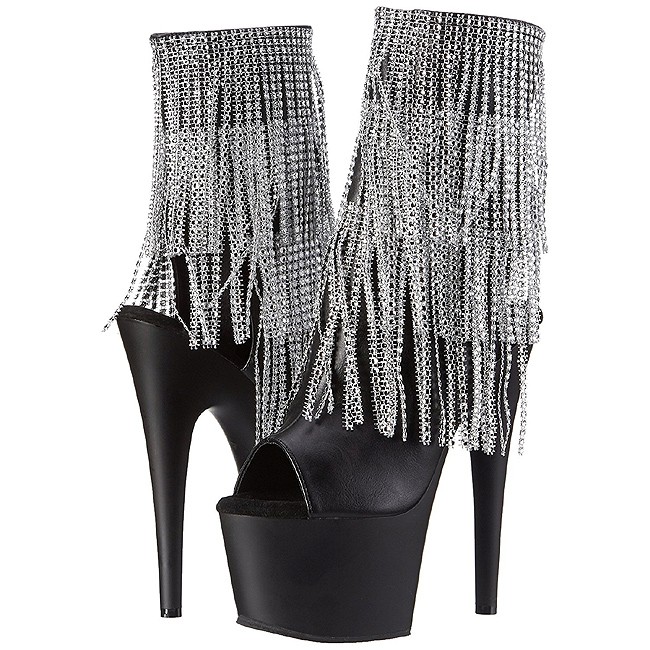pleaser - ado1024rsf/bpu/m - 7" (178mm) stiletto salto agulha, 2 3/4" (70mm) preto plataforma, strass botinha saltos altos com plataforma. frente abrir dedo do pé verso abrir calcanhar. tornozelo alto plataforma botas, o cama para pés é acolchoado com palmilha para alto conforto. botas de tornozelo para mulheres cano modeloado com três escalonado franjas a partir strass pedras, preto material superior feito a partir vegano couro de vinil. zíper localizado em si de lado para todo altura cano. perfeito pole dance botas, exótico gogo sapatos de dança! pleaser saltos altos botas são com amor feito!