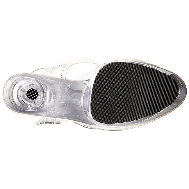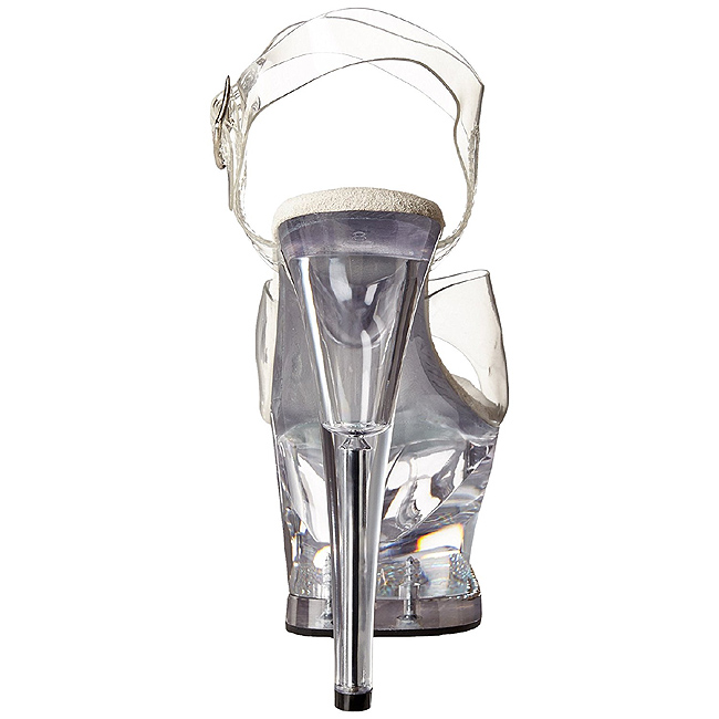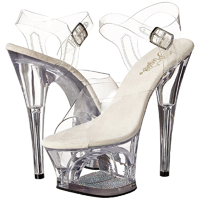 pleaser - moon708dm/c/m - 7"" (178mm) salto alto, 2 3/4 "" (70mm) recortar plataforma, transparente sandálias saltos altos com ajustável correia de tornozelo e fivela. nobre mulher sandálias acrílico calcanhar com recorte, frente abrir dedo do pé verso abrir calcanhar. o cama para pés é acolchoado com palmilha para alto conforto. transparente material superior a partir elástico folha de vinil feito. online calçados pleaser são com amor feito... perfeito pole dance sapato, exótico gogo sapatos de dança!