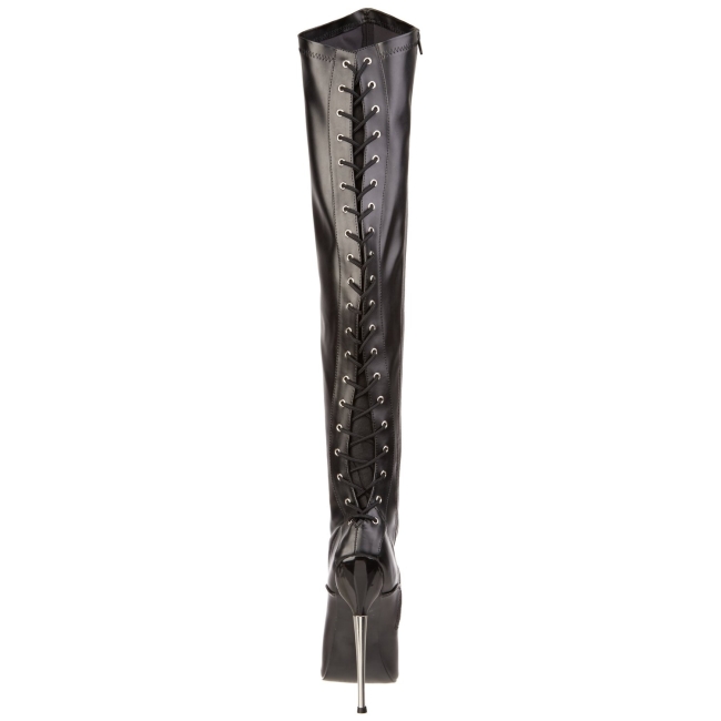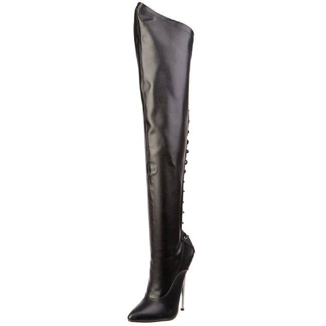 devious - dag3060/b/pu - 6 1/4 "" (15.9cm) stiletto salto agulha, fetish bota até a coxa com spike stiletto metalcalcanhar. pointed-toe bota até a coxa de amarrar para fetiche festas, verso abrir cano da bota com cadarços, frente pontiagudo dedo do pé. domina saltos agulha saltos altos overknees com elástico cano da bota, cano terminar do cano diagonal cortar. o cama para pés é acolchoado com palmilha para alto conforto. domina bota acima do joelho de mulher saltos agulha, preto esticar material superior feito a partir vegano couro de vinil. pleaser devious saltos altos botas são com amor feito!