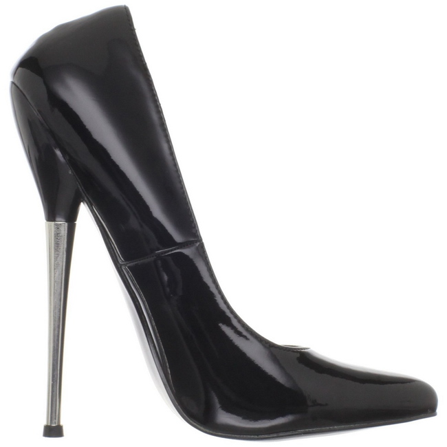devious - dag01/b - 6 1/4 "" (15.9cm) stiletto salto agulha, fetish scarpin com spike stiletto metalcalcanhar. pointed-toe sapatos de mulher scarpin verniz, verso fechado calcanhar frente pontiagudo dedo do pé. brilhante saltos agulha saltos altos, o cama para pés é acolchoado com palmilha para alto conforto. preto material superior feito a partir brilhante envernizado. pleaser devious stiletto sapatos são com amor feito!