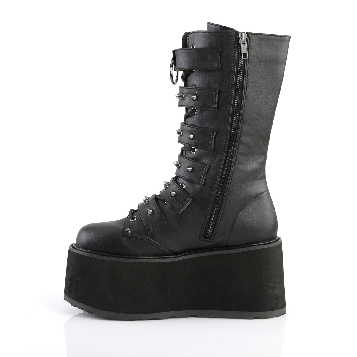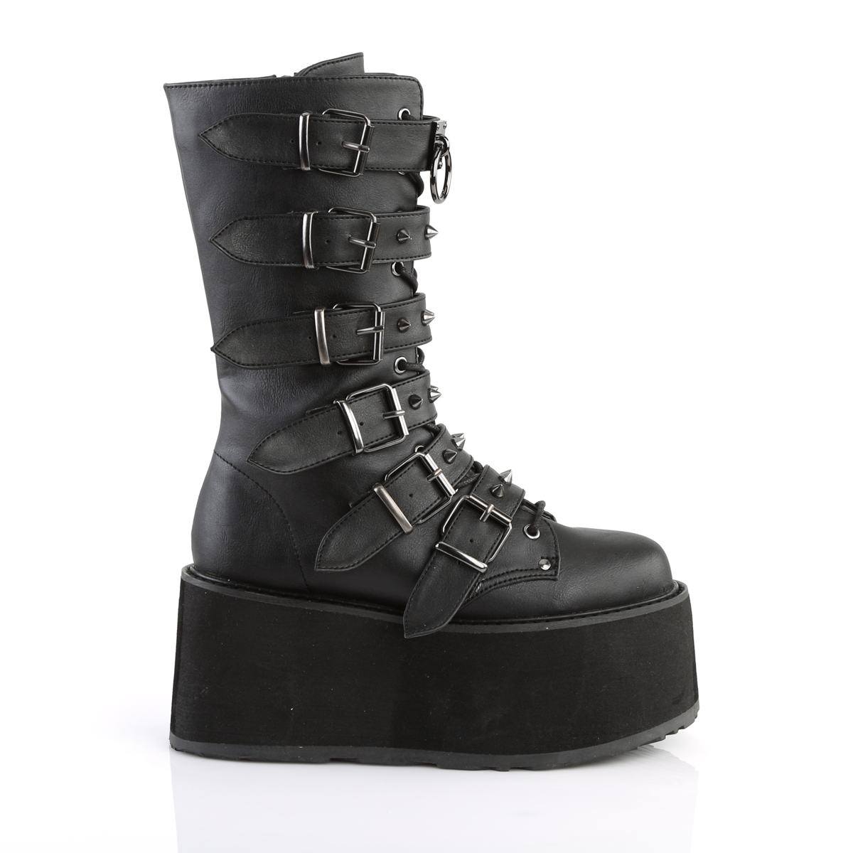 Vegan 9 cm DAMNED-225 mulher botas de cano alto plataforma com fivelas preto