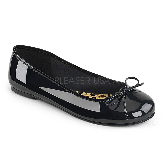 pleaser pink label - anna01/b - grande tamanhos verniz bailarinas sapatos para grande pés 39, 40, 41, 42, 43, 44, 45, 46, confortável plana bailarinas dedo do pé com laço decorado, verso fechado calcanhar frente fechado dedo do pé. o cama para pés é acolchoado com palmilha em padrão leopardoo. preto material superior feito a partir brilhante envernizado. também para homem, mulher, homem trans ou mulher trans adequado.. pleaser pink label sapatos são com amor feito!
