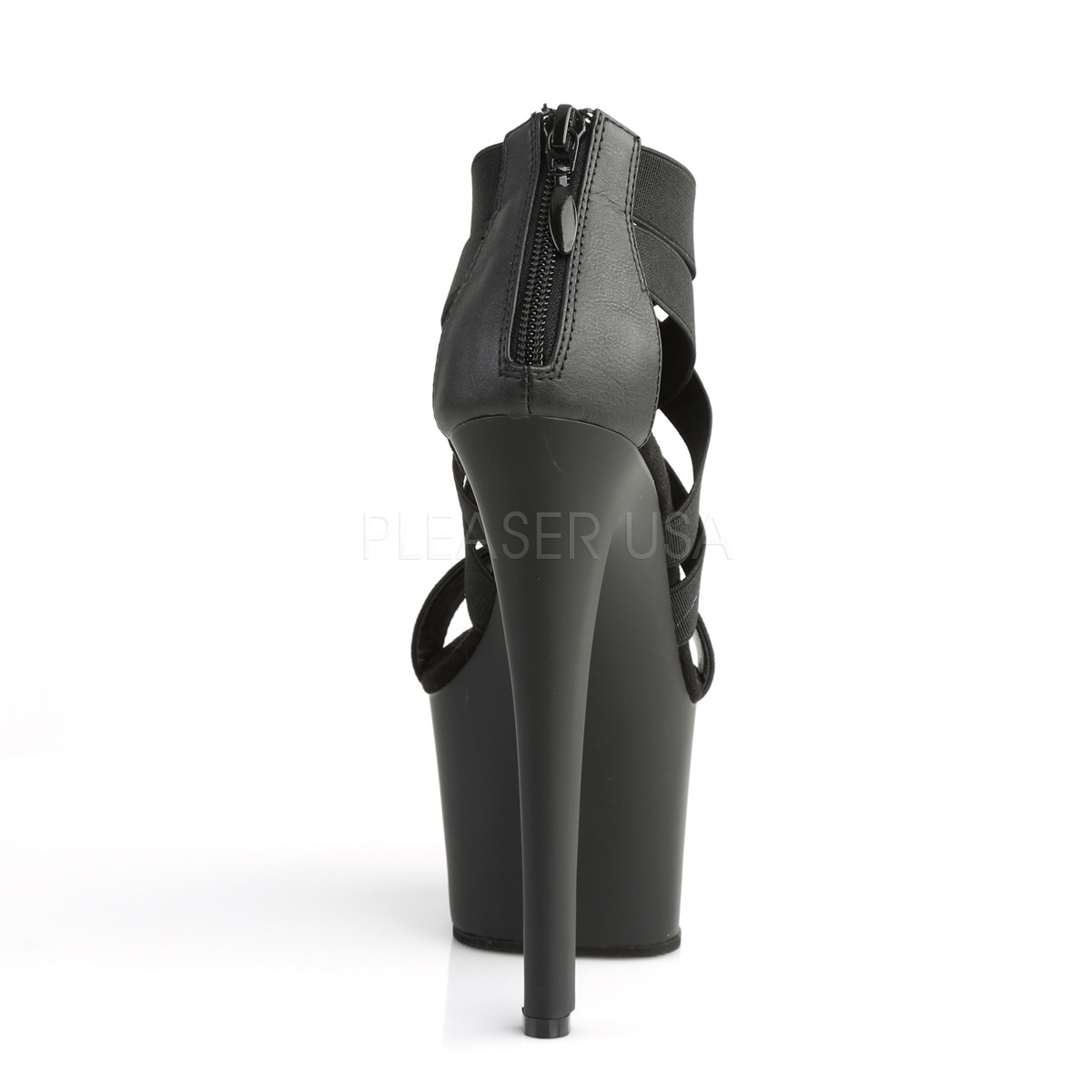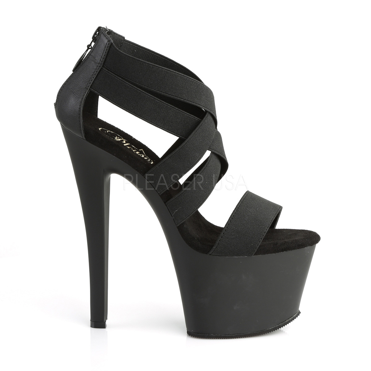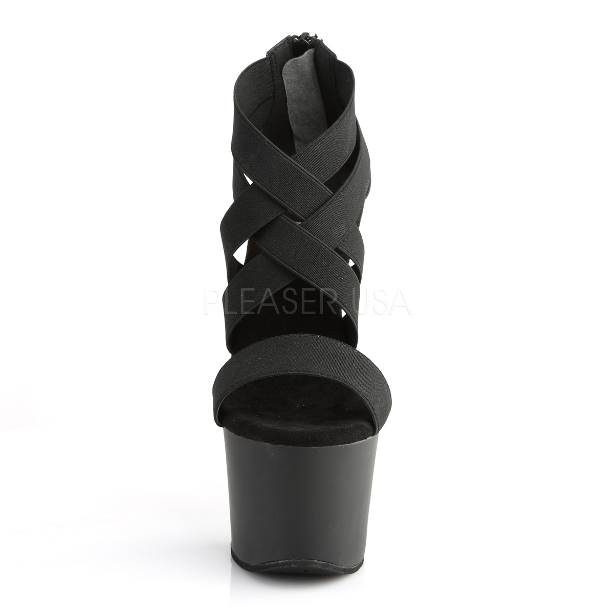 pleaser - sky369/bels/m - 7 "" (178mm) salto alto, 2 3/4 "" (70mm) preto , tornozelo alto de tirassandálias saltos altos com plataforma, verso fechado calcanhar frente abrir dedo do pé. mulher sandálias com cruzadas esticar fitas, o cama para pés é acolchoado com palmilha. preto material superior feito a partir vegano couro de vinil. fecho do calcanhar localizado em si traseiro via do todo altura do calcanhar. online calçados pleaser são com amor feito!
