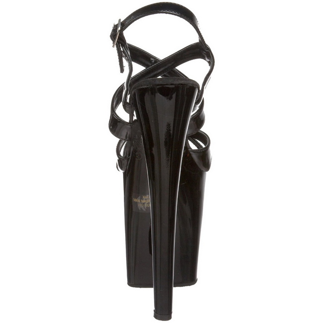 pleaser - xtm872/b/m - 8" (20.3cm) spike salto alto, 4" (10.2cm) preto , gigantes alto mulher sapatos saltos altos com cruzadas correia de tornozelo e fecho de fivela, verso abrir calcanhar frente abrir dedo do pé com correia modeloado. o cama para pés é acolchoado com palmilha para alto conforto. saltos altos com extremos plataforma, preto material superior a partir brilhante envernizado feito. perfeito pole dance sapato. exótico gogo sapatos de dança! pleaser calçados são com amor feito...